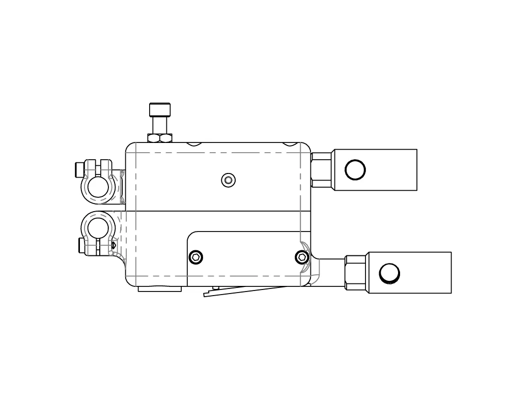 101850-003 Model Description: 20 oz. pneumatic miniature scissor gun. Right angled, with water cooled cables and adjustable stroke. Electrode force = 15 lbs. at 80 P.S.I.